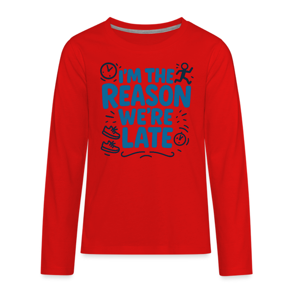 I’m the Reason We’re Late Kids Long Sleeve Tee - red
