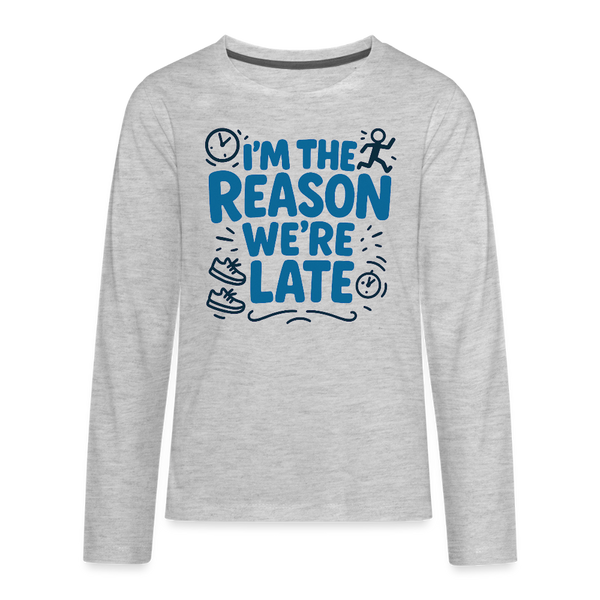I’m the Reason We’re Late Kids Long Sleeve Tee - heather gray