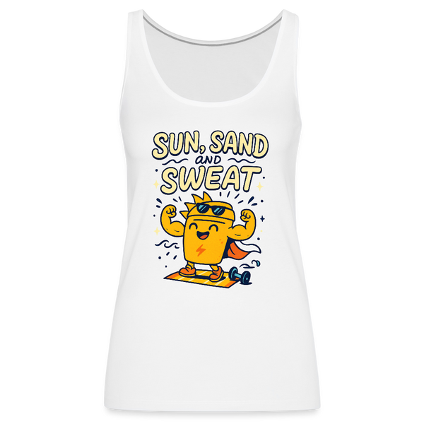 Embrace the sunny vibes and active lifestyle with our "Sun, Sand, and Sweat" Tank Top. Whether you're hitting the beach or the gym, this tank top combines comfort with a fun, motivational message. Perfect for those who love to stay active and enjoy the outdoors, it’s a great addition to your summer wardrobe or workout gear. Ideal for beach trips, sunny days, or a day at the gym, this tank top will keep you cool and stylish.